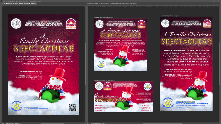 Original artwork for the Sussex Symphony Orchestra Christmas concert providing original artwork for A5 flyers with Social Media variants.