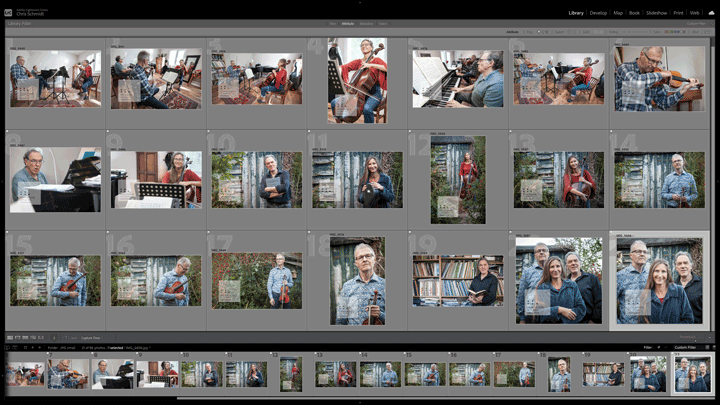A photo session with the Wealden Trio creating promotional material including headshots, groupshots and documentary rehearsal images. [the delivered contact sheet]