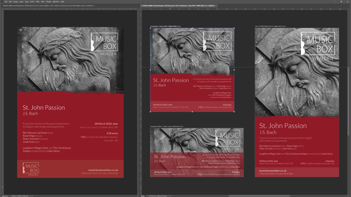 Original artwork for Music Box Wealden providing posters, flyers and social media assets plus an 8pp programme for their performance of Bach's St.John Passion.