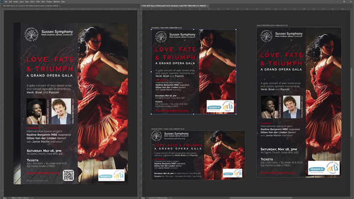 Original artwork for the Sussex Symphony Orchestra gala concert of operatic highlights featuring the soprano Nadine Benjamin MBE and Dutch tenor Gilles Van der Linden.